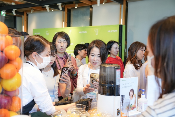 最新モデル「H70FT」を実際に触れ、コールドプレスジュースの搾汁体験を行いました。参加者は、製品の使いやすさと高性能を直に体感し、健康的なライフスタイルの一環としてのコールドプレスジュースの可能性を実感しました。