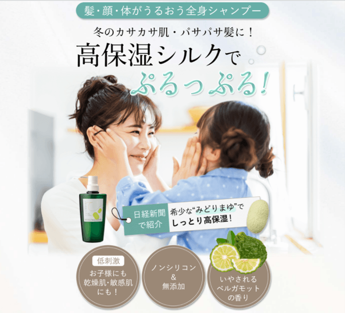 株式会社きものブレイン(本社:新潟県十日町市/代表取締役:岡元 松男)が展開する“みどり繭の力で人びとの健康と美を守る”をコンセプトとしたライフスタイルブランド「絹生活研究所」は、人気商品である『ココニカル全身シャンプー』の定期購入プランを開始いたしました。この商品は1本で全身洗えて、ご家族でもご使用いただけるためリピーター様が多く、より「便利で」「お得に」ご利用いただきたいという想いからスタートいたしました。