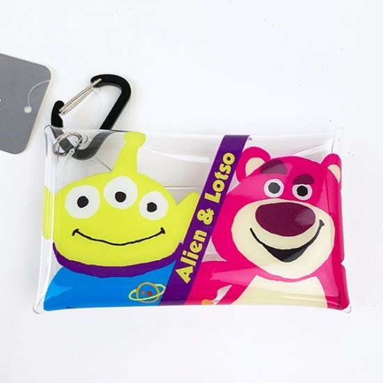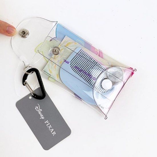 クリア素材で中身が良く見えます。カラビナ付きなので鞄に引っ掛けても便利ですね。