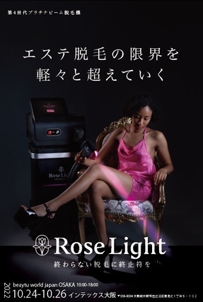 第4世代の「プラチナビーム脱毛機ローズライト」が 10/24より開催のビューティーワールドジャパン大阪 2022に出展