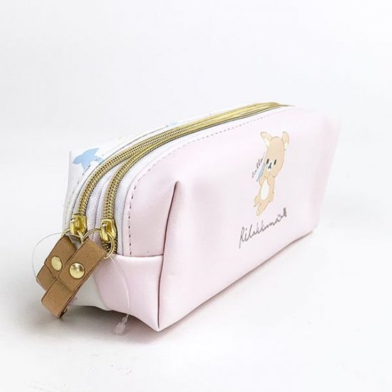 Happy Blue Birdシリーズのペンポーチも、ご紹介します。パステルピンクの背景に、優しいタッチで描かれたリラックマがラブリーです♡幸せの青い鳥が手にとまっていて、なんだかハッピーな気分に♪
