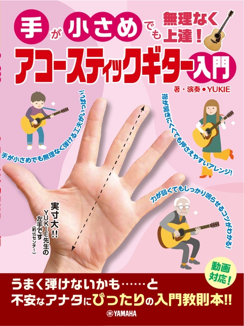 著者は“ヤマハポピュラーミュージックスクール”で女性ギター講師として活躍する「YUKIE先生」。自身も小柄で小さな手であることから、同じ悩みを持つすべての方の気持ちに寄り添った内容で書かれています。
