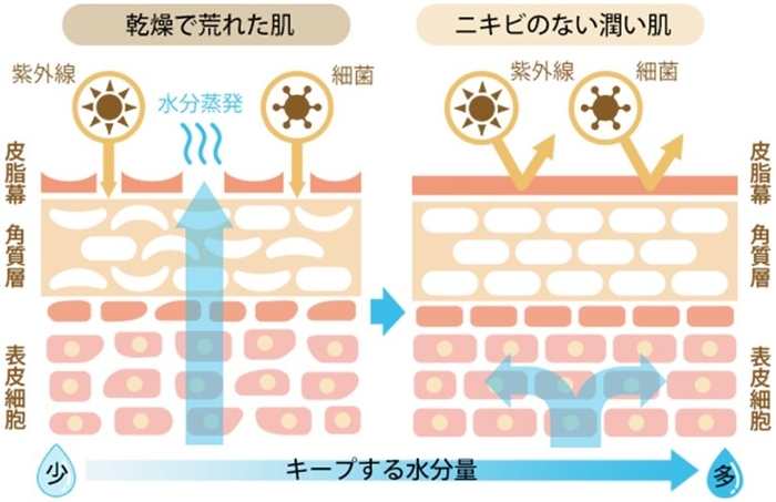 乾ききった肌を化粧水でゴクゴク潤し、ニキビの発生を抑制!