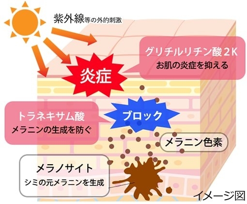 ※メラニンの生成を抑え、しみ、そばかすを防ぐ。肌を整える。皮膚をすこやかに保つ。皮膚にうるおいを与える。皮膚を保護する。皮膚の乾燥を防ぐ。