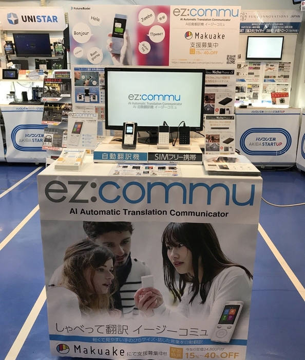 パソコン工房AKIBA STARTUPにて「 4つの翻訳エンジン×AIで最適な翻訳を選択するSIMフリー双方音声翻訳機「ez:commu(イージーコミュ)」 」展示中