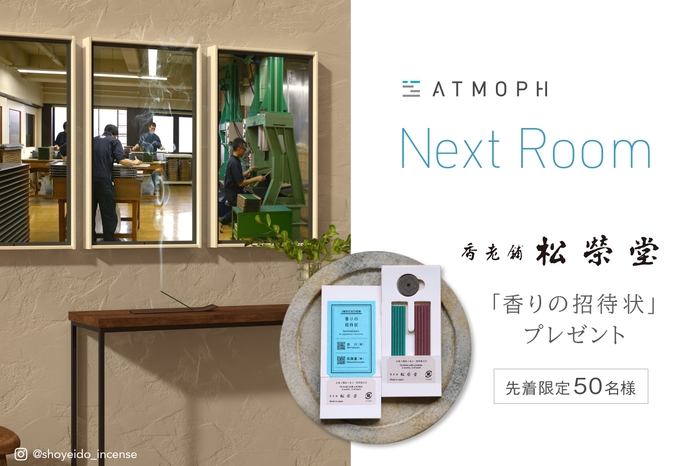 また、リリースキャンペーンとして、今回の配信風景の中に登場する「香老舗 松栄堂」より気軽にお香が楽しめるトライアルセット、「香りの招待状」をAtmoph Window 2をお持ちの方限定で先着50名様にプレゼントします。(配送は、日本国内のみとなります。)