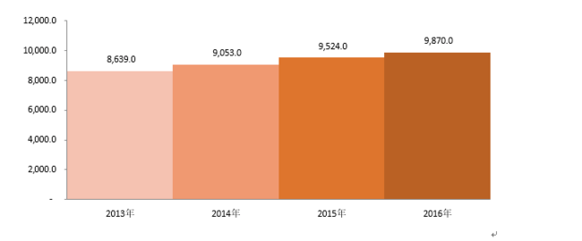 一人当たりの米国医療費、(USD)、2013ー2016年