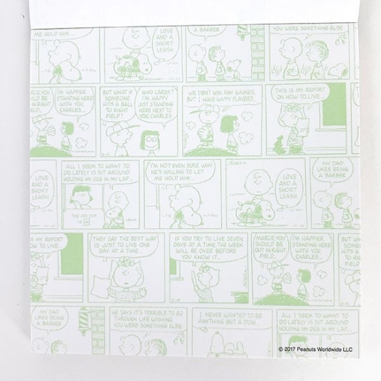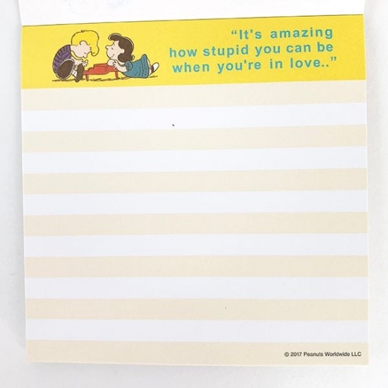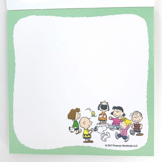 仲睦まじいキャラクターたちが微笑ましいこちらのメモパッドはPEANUTSの仲間たちがたくさん♪