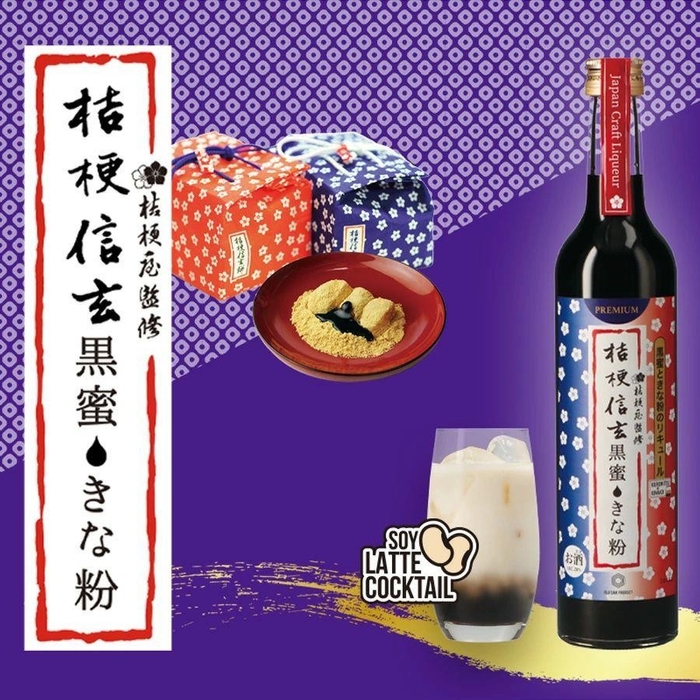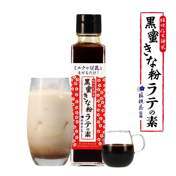 このたび発売する「桔梗信玄黒蜜きな粉ラテの素」は、「桔梗信玄黒蜜きな粉リキュール」のノンアルコールバージョン。