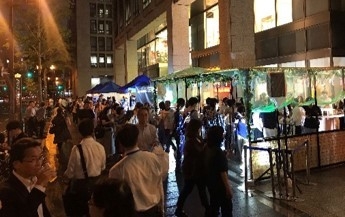 2019年4月に「御堂筋天国プロジェクト」を発表し、淀屋橋odona前で開催した第1弾イベント「桜SAKEフェスタ」は、平日夕方の開催にも関わらず、約1,000人が来場し、オフィス街の真ん中で花見酒を楽しんでいただきました。第2弾となる今回は、新たに大阪ガス本社ビル前までエリアを拡大し、同日開催の「北御堂盆踊り」とも連携し、約1,500人が来場しました。イベントでは関西にゆかりのあるビール、日本酒、ワイン、ノンアルコール飲料に加え、関西の食材を使ったメニュー、金魚すくいや千本引きなどがあり、子供から大人まで多くの方々に楽しんでいただきました。また、今回は開催エリアの拡大だけでなく、淀屋橋odonaの商業店舗と連携し、各店舗よりオリジナルのメニュー提供やグッズ販売など、御堂筋天国プロジェクトに賛同・協力して頂ける企業が増えました。次回は、10月下旬に秋イベントの開催を予定しており、さらなる賛同・協力企業の増加を目指し、取り組んでまいります。