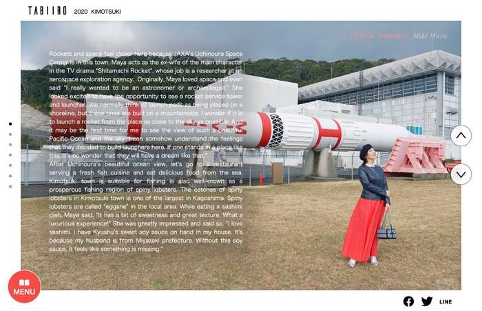 今回、旅の舞台となる肝付町には、探査機「はやぶさ」などを打ち上げてきたJAXAの施設「内之浦宇宙観測所」があり、日本の最先端科学技術を間近に感じられることから、アメリカをはじめとする欧米諸国の注目を集めています。また、ケネディ宇宙センターがあり、温暖で海に面している事など類似点が多いアメリカ合衆国フロリダ州ケープ・カナベラル市へ、毎年肝付町の子供達を派遣する国際交流も行っており、特に宇宙研究関係者や宇宙への興味・関心の高い欧米諸国の方々が多く来日しています。「旅色」では、同町の観光の見どころと豊かな名産品を特集することで、世界中の多くの方々に肝付町の魅力を発信していきます。