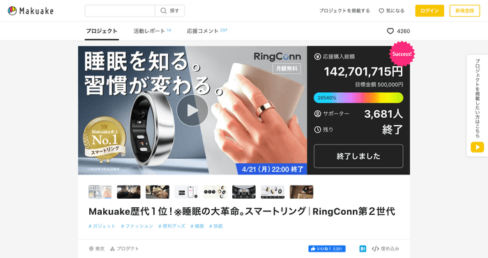 第1位【142,701,715円達成】Makuake歴代1位!※睡眠の大革命。スマートリング|RingConn第2世代