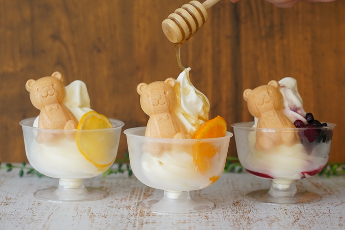 詳細:はちみつと相性抜群のソフトクリームが、くまさんとハニーフルーツがついたサンデーに。カフェにある8種類のかけ放題蜂蜜をたっぷりかけて、はちみつを存分に味わっていただけます。