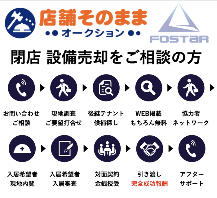 フォスター株式会社(本社:福岡県福岡市博多区、代表取締役:青木 日吉)は、閉店 設備売却をお考えの方へ向けたサービス『店舗そのままオークション』の福岡市中央区エリア・福岡県その他地域への提供を開始いたしました。