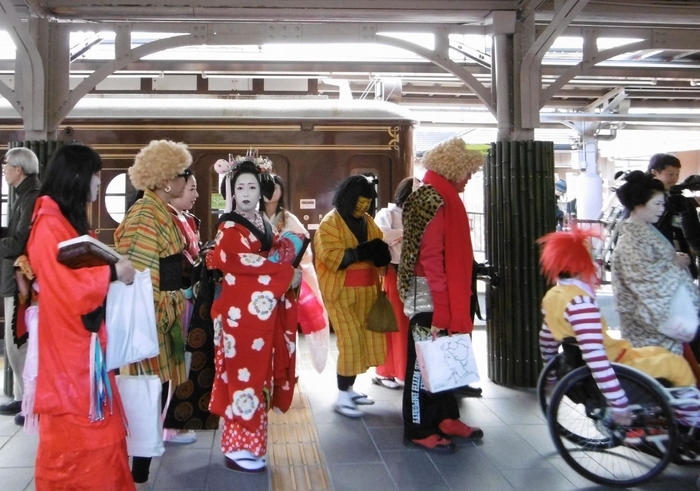 2月3日(金)の節分に「節分お化け」の一行が嵐電に乗車します。