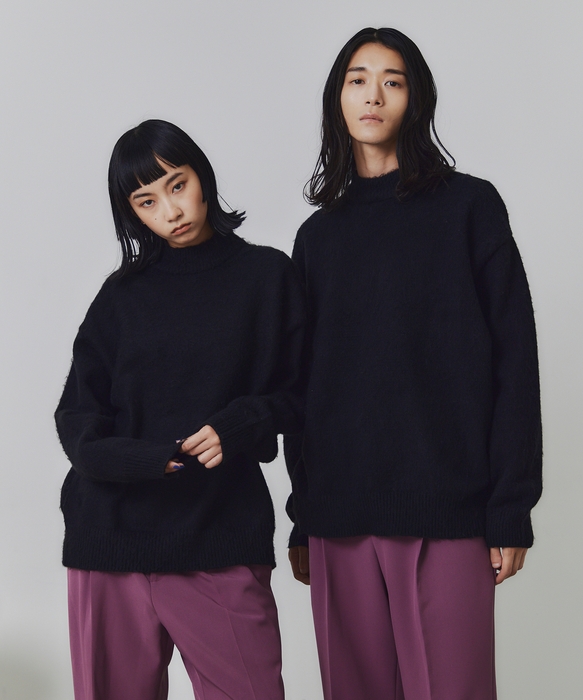 シャギーニットシリーズは、毛足の長い柔らかな生地感と今らしい緩めのシルエットに加えて圧倒的なカラーバリエーションが特徴のアイテム。