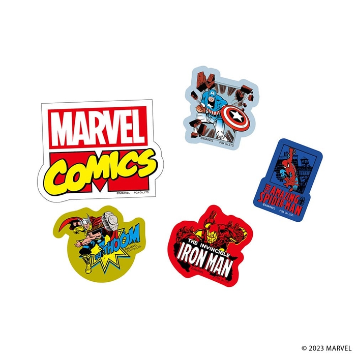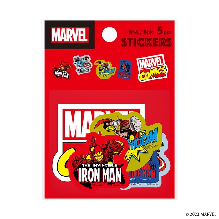 スマートフォンケースに挟むのにオススメな「MARVEL」デザインのステッカーです。スマートフォンとクリアケースの間に挟み込んで、自分好みにアレンジ出来ます。PVC素材で耐光性・耐水性に優れ、スマートフォン以外にもご使用頂けます。1柄1枚で合計5枚入りです。