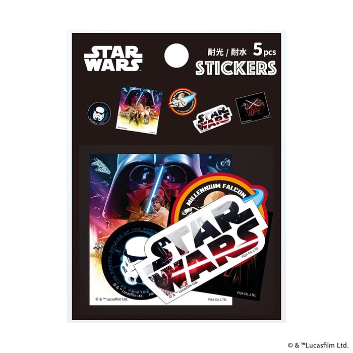 スマートフォンケースに挟むのにオススメな「STAR WARS」デザインのステッカーです。スマートフォンとクリアケースの間に挟み込んで、自分好みにアレンジ出来ます。PVC素材で耐光性・耐水性に優れ、スマートフォン以外にもご使用頂けます。1柄1枚で合計5枚入りです。