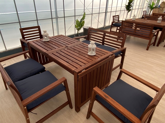 摘み取っていただいたいちごは、かわいらしい家具に囲まれたスペースでゆったりとリラックスし写真撮影を楽しみながら、お召し上がりいただけます。