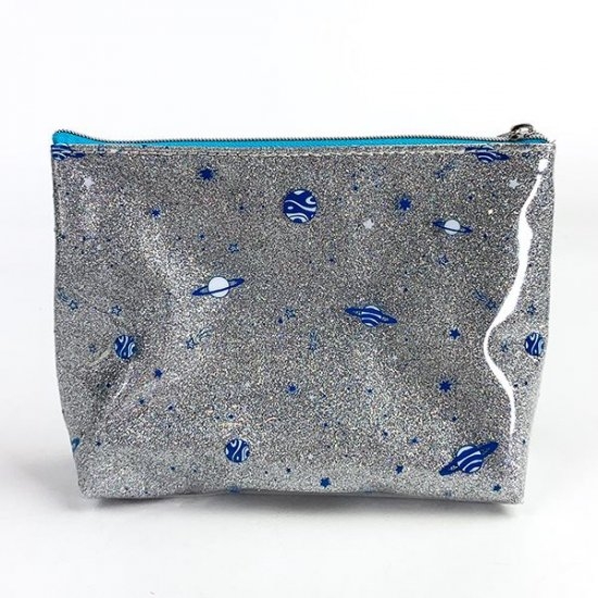 人気のPVC素材のポーチで、しかもメタリック生地を重ねているのでキラキラ感がとってもきれいなんです。