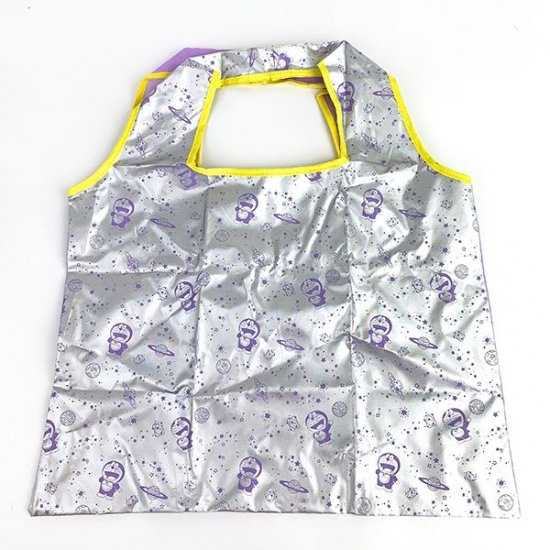 こちらも映画から生まれた、エコバッグです。シルバーメタリックの生地に、ドラえもんが宇宙にいるようなデザインが幻想的ですよね。