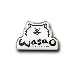少しばかり変わり種の「ご当地仕様」となった完成品は、土産物屋や道の駅などの店内で販売されるやいなや、訪れたお客様から熱い視線を浴びているとのことで、「わさお効果」と確かな品質で売れ行きも抜群だとか。「着ぐるみ」が主流を占めるマスコットキャラクターの中にあって、本物の生きた「犬」が人々の話題に上るというのは大変珍しいこと。そんな「わさお」をいつでも身に着けられるようにした小さなピンズは、期待を裏切らない働きぶりで郷土のために大活躍しているようです。