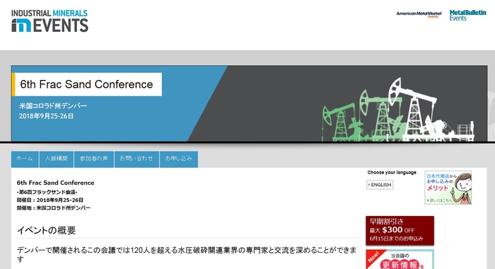国際会議 「6th Frac Sand Conference-第6回フラックサンド会議」(Metal Bulletin主催)の参加お申込み受付開始