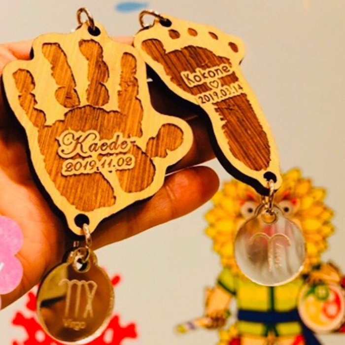 お子様の手足型を実寸サイズで制作、手のひらの中に文字がいれれます✰