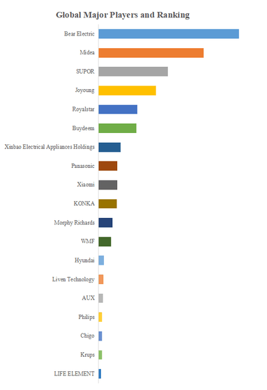 YHResearchのトップ企業研究センターによると、ヘルスポットの世界的な主要製造業者には、Bear Electric、Midea、SUPOR、Joyoung、Royalstar、Buydeem、Panasonic、Xinbao Electrical Appliances Holdings、Xiaomi、KONKAなどが含まれている。2023年、世界のトップ10企業は売上の観点から約63.0%の市場シェアを持っていた。
