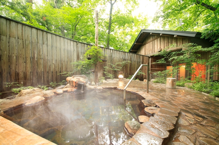 土地の地形や木々を活かした大風呂、4つの貸切露天風呂は、季節・時間によってその表情を変えます。露天風呂の湯巡りで、自然のなかに溶け込むようなひとときをお楽しみください。