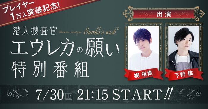 「プレイヤー1万人突破記念! 梶裕貴×下野紘で贈る リアル脱出ゲーム『潜入捜査官エウレカの願い』特別生放送!」番組概要