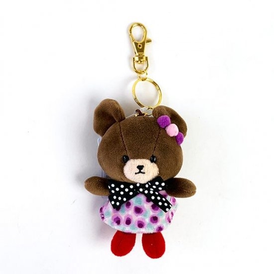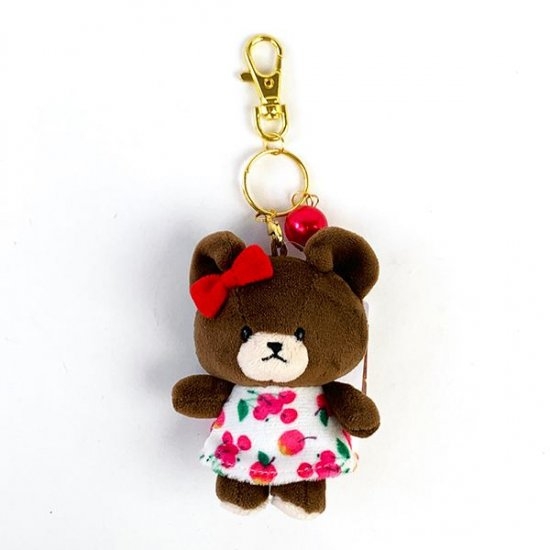 ピンク系のフルーツ柄ワンピがかわいい、ジャッキーのマスコットキーホルダーです。