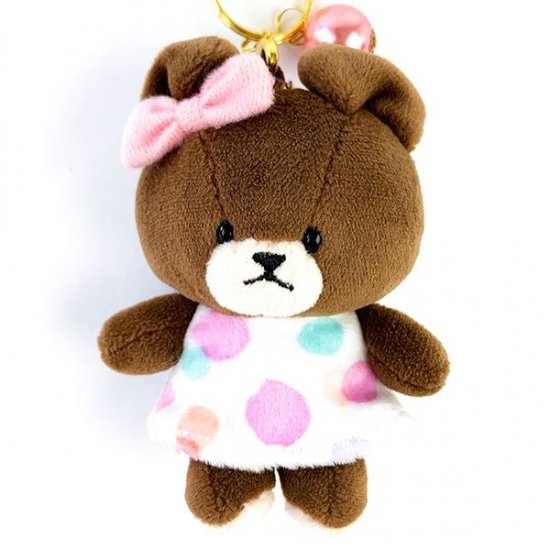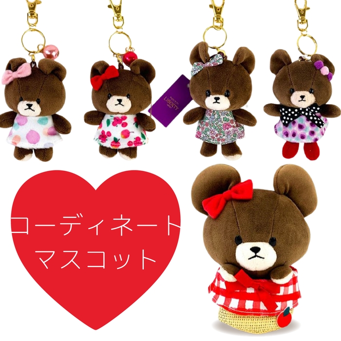 コーディネートして一緒にお出かけ♪くまのがっこうのワンピースを着たマスコット。どの柄にしよう、、、
