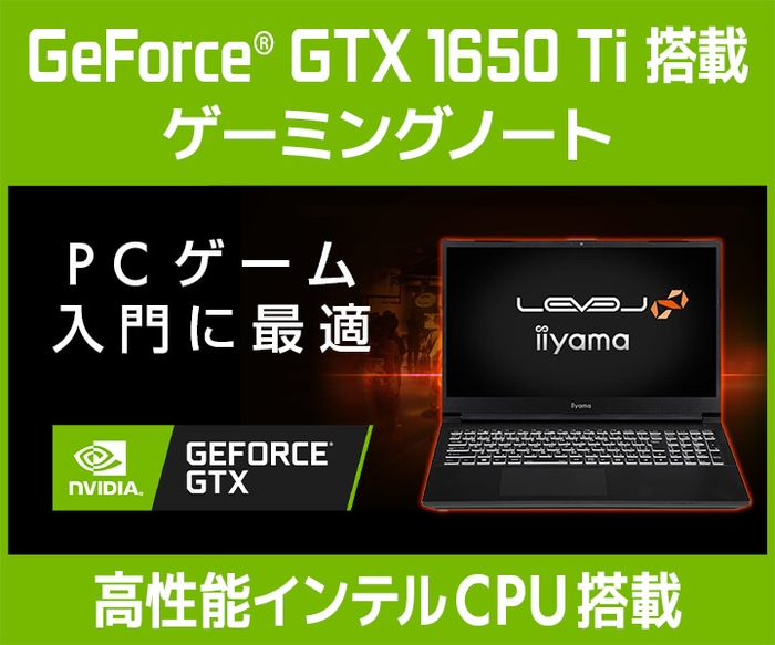 iiyama PC「LEVEL∞(レベル インフィニティ)」より PCゲーム入門に最適な NVIDIA® GeForce® GTX 1650 Ti搭載 ゲーミングノートパソコン発売!