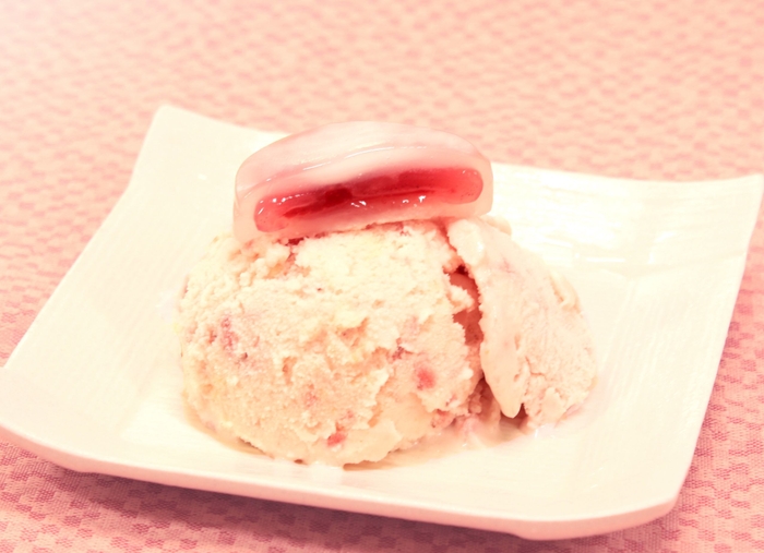 本当に美味しいいちご菓子を追求する中で、いちごと相性が良いのは洋菓子だけではないという想いから、和素材としての可能性について研究しておりました。今回のお餅はベースとなるジェラートや中に含んでいるいちごあんとの調和を考え、生地の厚みや食感等、何度も試作を重ねる中で完成しました。ここには、完熟いちご菓子研究所の親ブランドであり、創業150年を迎えた菓心 谷常の熟練職人による伝統技術が詰まっています。2年間を費やしアイスと一緒に食べても美味しいお餅の研究を進めてきました。ようやく半解凍で食べても美味しく、またとろりと溢れるいちごソースと一緒に、“プルン”とした食感を楽しむことのできるお餅を完成させることができました。