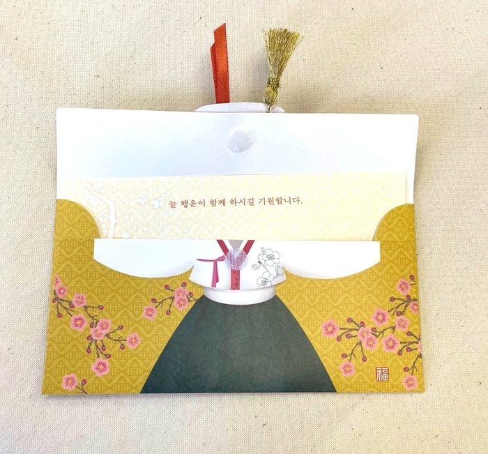 韓国では、両親にお小遣いをより丁寧に渡したい20代男女からとくに人気があり、「いつも幸運が一緒であるように祈ります」と書かれた中紙に真心を込めたコメントを添えて贈れば、きっと喜ばれること間違いなし!