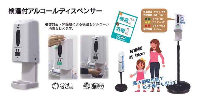 ヒトや環境に優しい安全な消毒除菌用品、非接触、非対面による検温、サービス提供者のリスクを軽減し、より良いサービスを提供することで社会に貢献できる提案をしていきます。