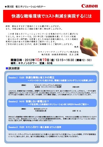 キヤノンマーケティングジャパン株式会社(以下キヤノンMJ)は、「省エネソリューションセミナー」を開催します。