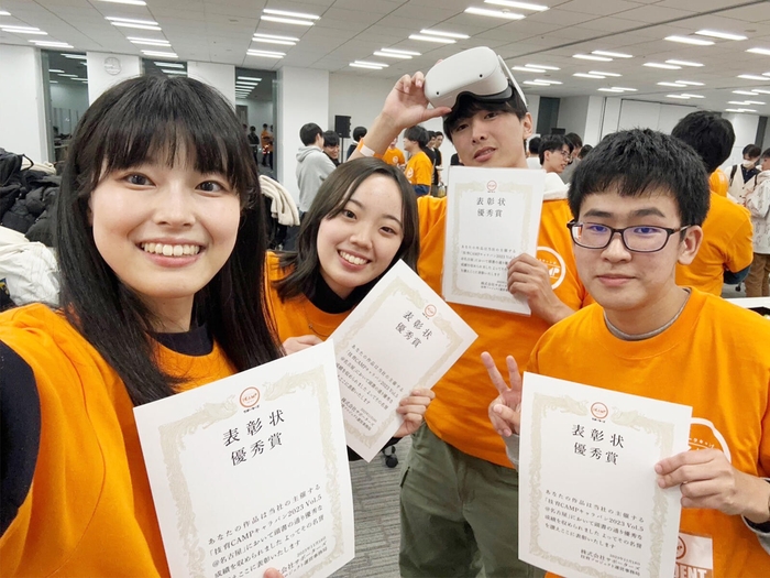 はい。「Artechs」として、仲間と一緒に4回参加しました。2023年に参加した「技育キャラバン」というハッカソンでは、名古屋の大会で優秀賞を受賞し、東京の大会にも出場。最終的には副大賞をいただきました。その時私はゲームのキャラクターの3Dモデリングとプレゼン資料作成を担当しました。評価されたポイントは、ARとVRを組み合わせたゲームとしての新しさに加え、ゲームBGMやキャラクターもオリジナルでゼロから作ったことでした。この時のメンバーは4人。2人がプログラミングとコーディング、私ともう1人がビジュアルを担当しました。