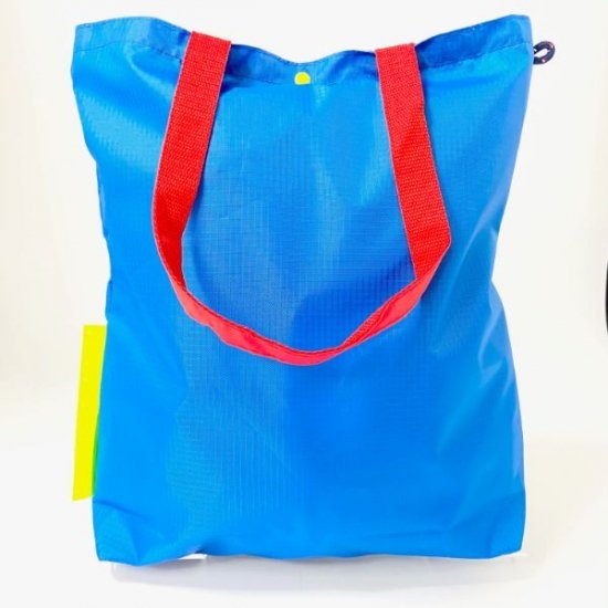 持ち手が赤で、本体はブルー。まるでドラえもんそのもののようです。こちらもリップストップ生地で作られているので、軽いのに丈夫なんです。