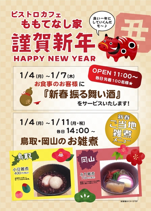 ももてなし家:新春慶酒サービス&毎年恒例お雑煮(1月4日~)