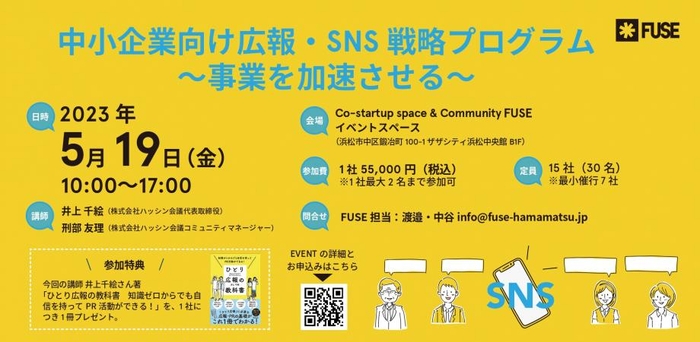 5/19に浜松で講座「中小企業向け広報・SNS戦略プログラム〜事業を加速させる〜」を開催