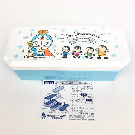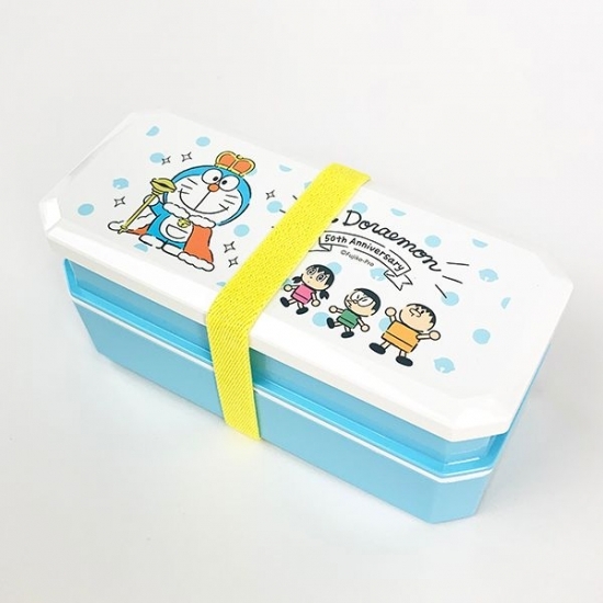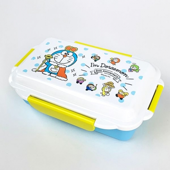 ホワイトとブルーの配色がきれいなお弁当箱は、まさにドラえもんらしさを感じますよね。王様のような服装で50周年をお祝いしているドラえもんが、デザインされています。