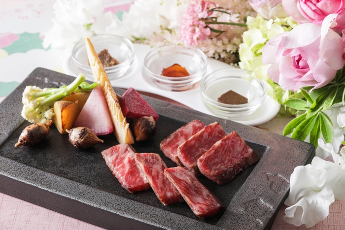 よく締まった赤身から“世界最高峰の牛肉”と呼ばれている黒毛和牛のフィレとロースを贅沢にご用意。