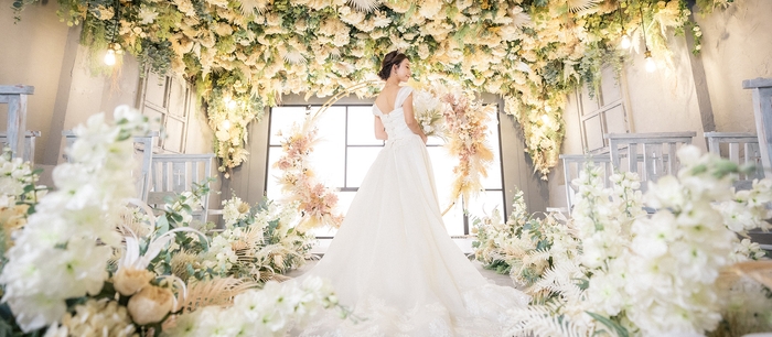 王道の花がたくさん詰まった背景に始まり、京都らしい和風な背景やシンプルで真っ白な背景、アンティーク調のものなど、2人の好みに合わせて撮影できますよ。