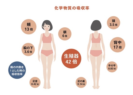 腕の内側を1とした場合、デリケートゾーンの吸収率は42倍