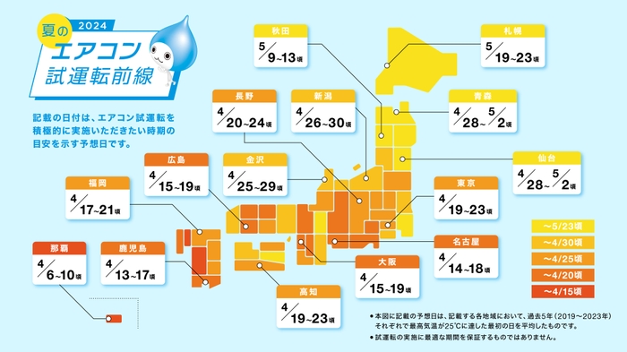 「夏のエアコン試運転指数」と2024年版「夏のエアコン試運転前線」公開! 地域別エアコン使用開始時期の違いを考慮して試運転のきっかけに活用