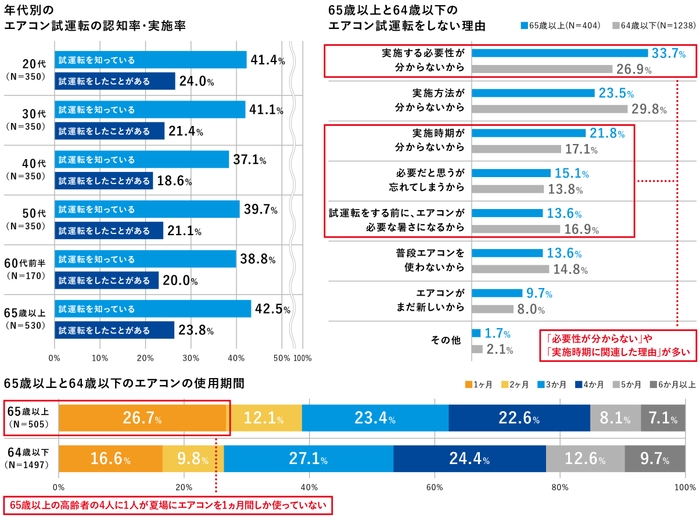 高齢者はエアコン試運転の認知率や実施率が比較的高い半面、 高齢者の4人に1人は夏場にエアコンを1ヵ月しか使っていないことが判明