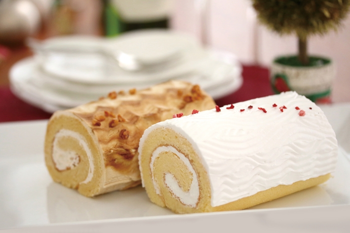 今年は、ロールケーキで素敵なクリスマスを過ごしていただきたく、新商品として「ロールケーキ」をラインナップしました。しっとりとした柔らかくキメの細かいスポンジに口どけのよい生クリームをたっぷりと挟みました。生クリームとキャラメル各1本の2本セットです。