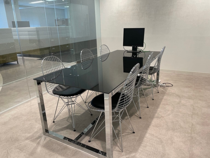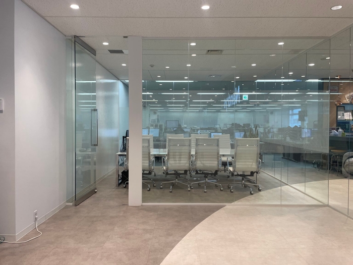 執務スペースとを隔てる間仕切りはガラス仕様の間仕切りで、スタイリッシュな印象です。